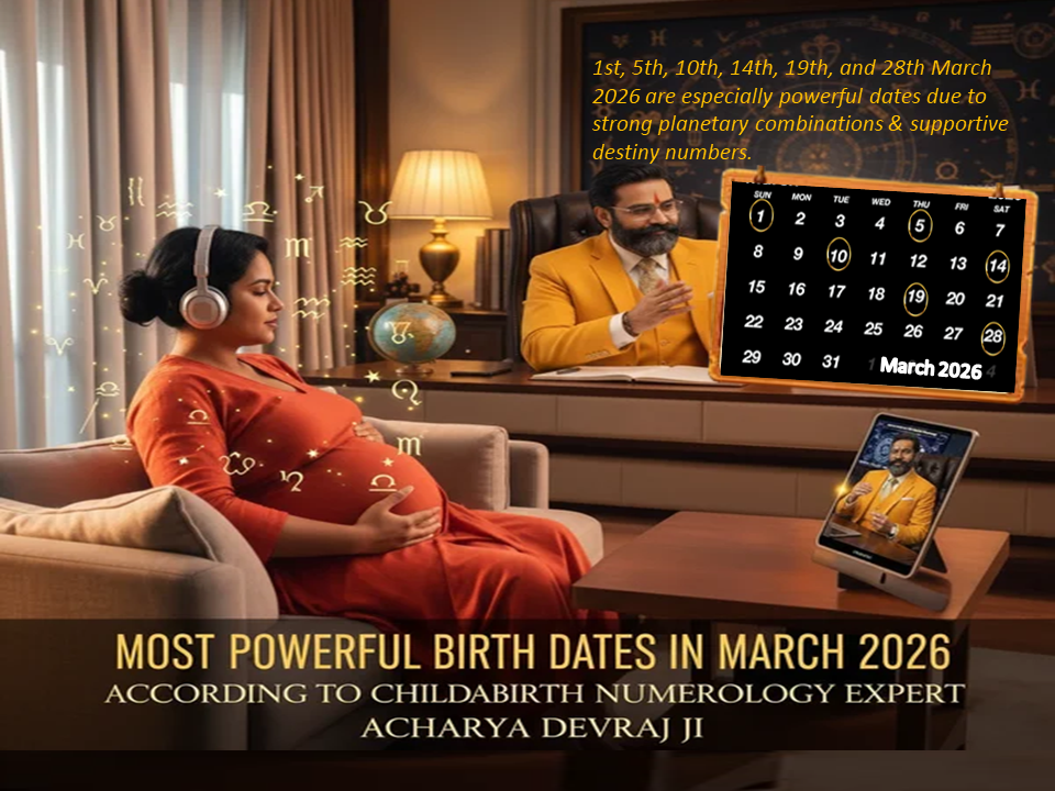 Discover the best and lucky dates for baby birth in March 2026 with Raj Yogas according to Vedic Numerology. Learn about auspicious normal and cesarean delivery dates, Mulank and Destiny Number meanings, and expert birth planning guidance by Acharya Devraj Ji for a lucky, healthy, and balanced child.