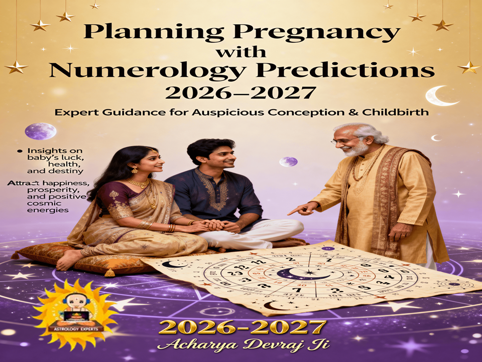 Planning Pregnancy with Numerology Predictions 2026–2027 helps couples choose the most auspicious time for conception and childbirth. Numerology reveals powerful insights about baby’s future luck, health, and destiny. With expert guidance from Acharya Devraj Ji, plan your pregnancy to attract happiness, prosperity, and positive cosmic energies for your child.